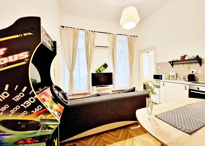 Sega Rally Apartment Free Parking Budapest de 50 m² est situé dans le voisinage de "07. Erzsébetváros" à Budapest, à 5 minutes à pied du Théâtre Madách. En séjournant dans l'appartement, niché près de l'hôtel Anantara New York Palace Budapest, les clients peuvent se détendre sur une terrasse.